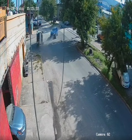 En las imágenes se observa cómo una camioneta azul circulaba por la primera avenida, mientras que un carro blanco de paila descendía por la 13 calle.