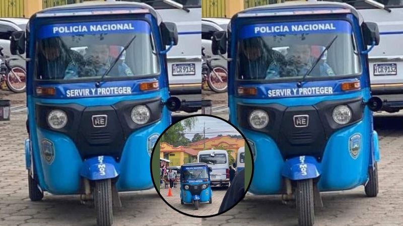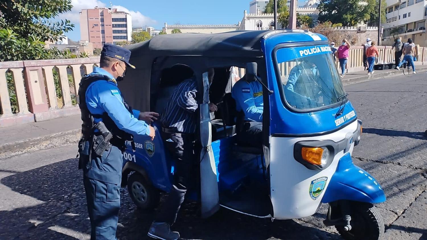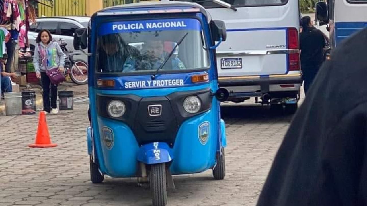 CURIOSA. Un joven captó el pasado domingo una «mototaxi patrulla» de la Policía Nacional (PN) que recorría las calles y avenidas de Valle de Ángeles, Francisco Morazán.