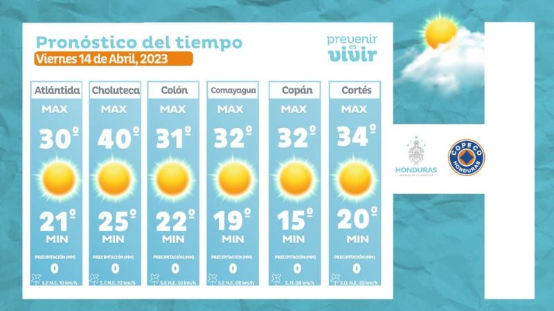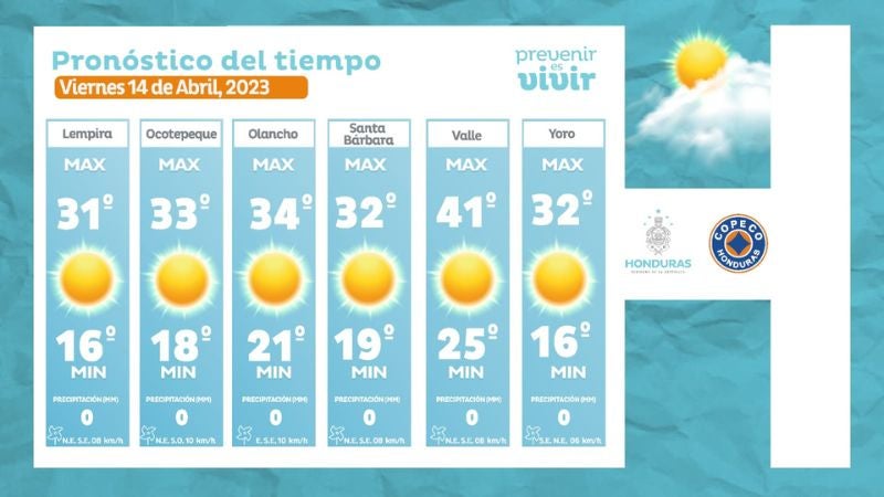 - Olancho: 34° como máxima, 21° como mínimas (02 milímetros)
