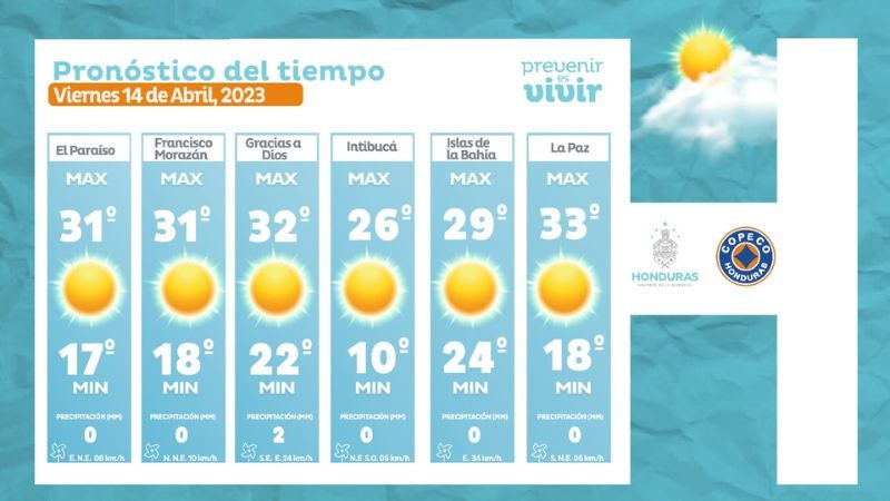 - Lempira: 31° grados como máxima, 16° como mínimas (0 milímetros)
