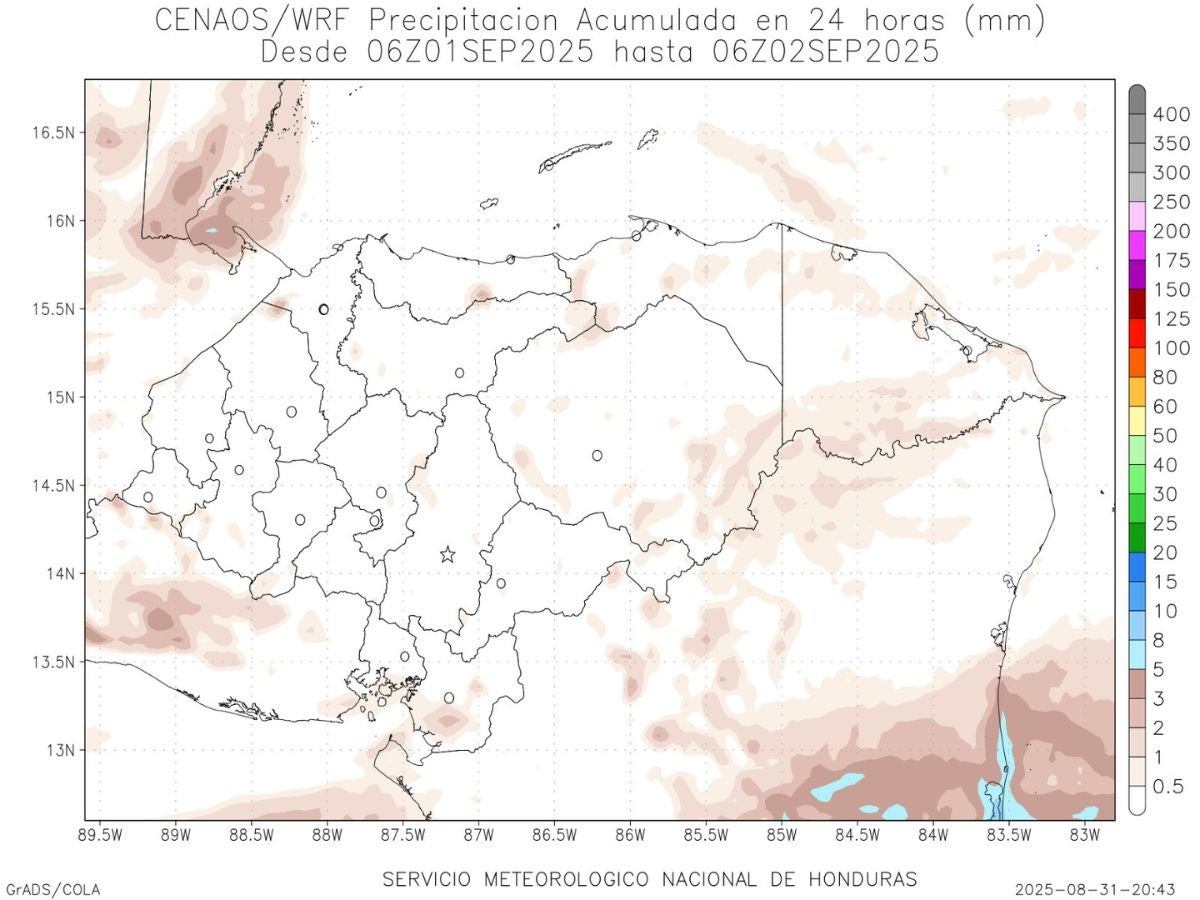 - Choluteca: 38° como máximo, 24° como mínimas (0 milímetros)
