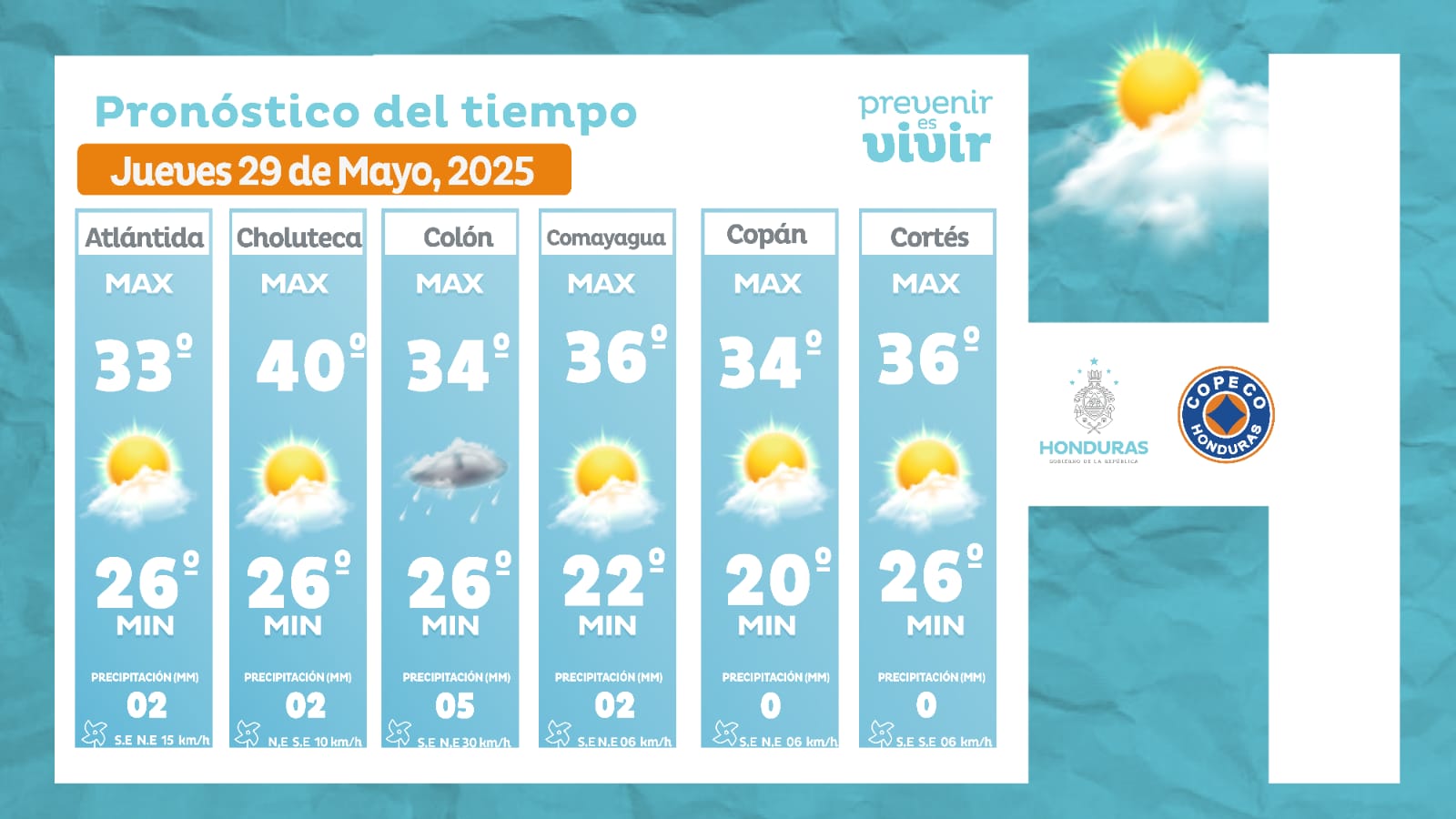 Clima. El Centro Nacional de Estudios Atmosféricos, Oceanográficos y Sísmicos (Cenaos) anunció a través de sus canales oficiales el pronóstico del clima para este jueves 29 de mayo de 2025.