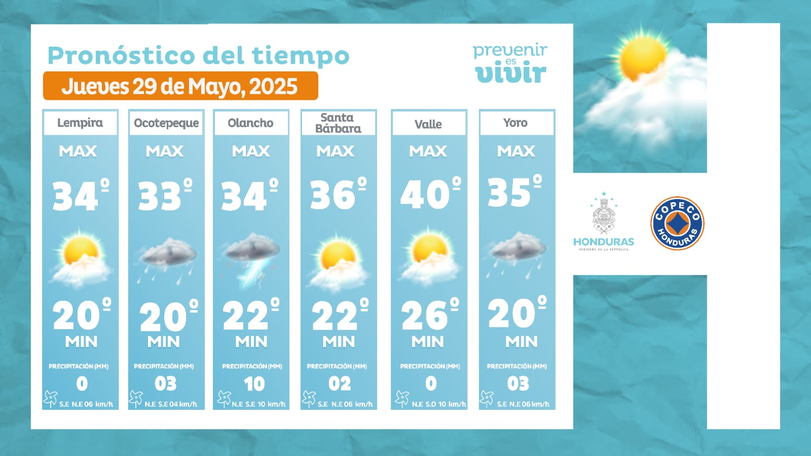 - Lempira: 34° grados como máxima, 20° como mínima (0 milímetros).