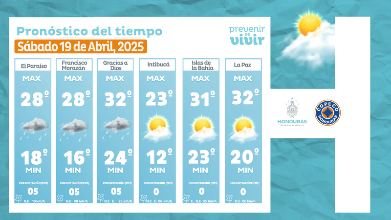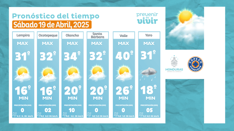 - Tegucigalpa: 28° como máximo, 16° como mínima (05 milímetros).