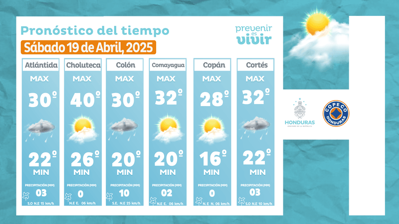 - San Pedro Sula: 32° como máximo, 22° como mínima (03 milímetros).
