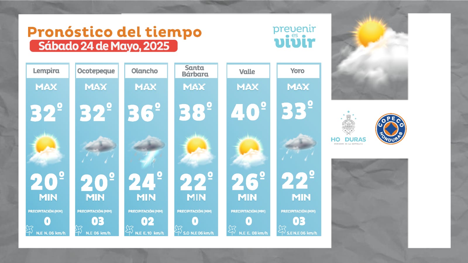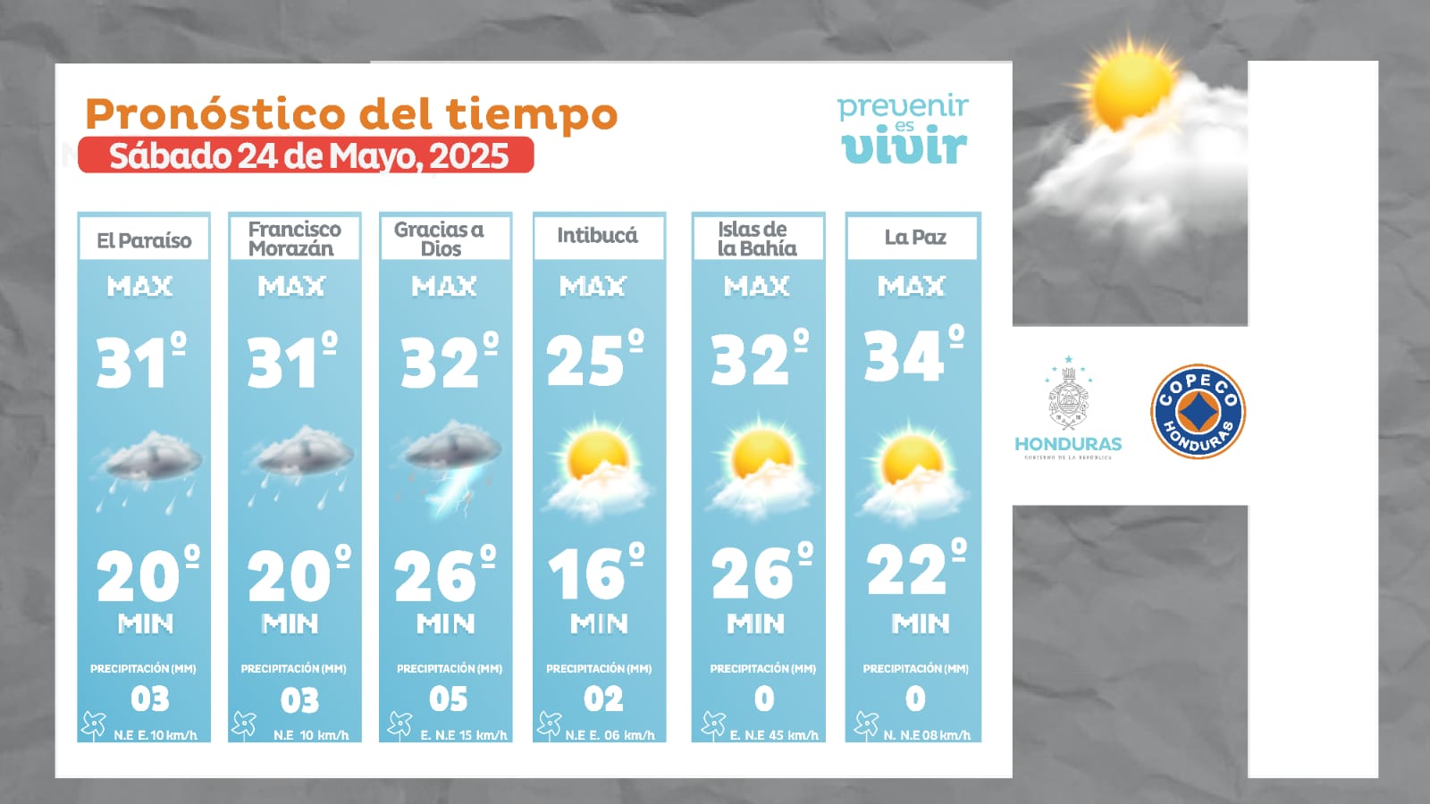- San Pedro Sula: 34° como máximo, 24° como mínima (05 milímetros).