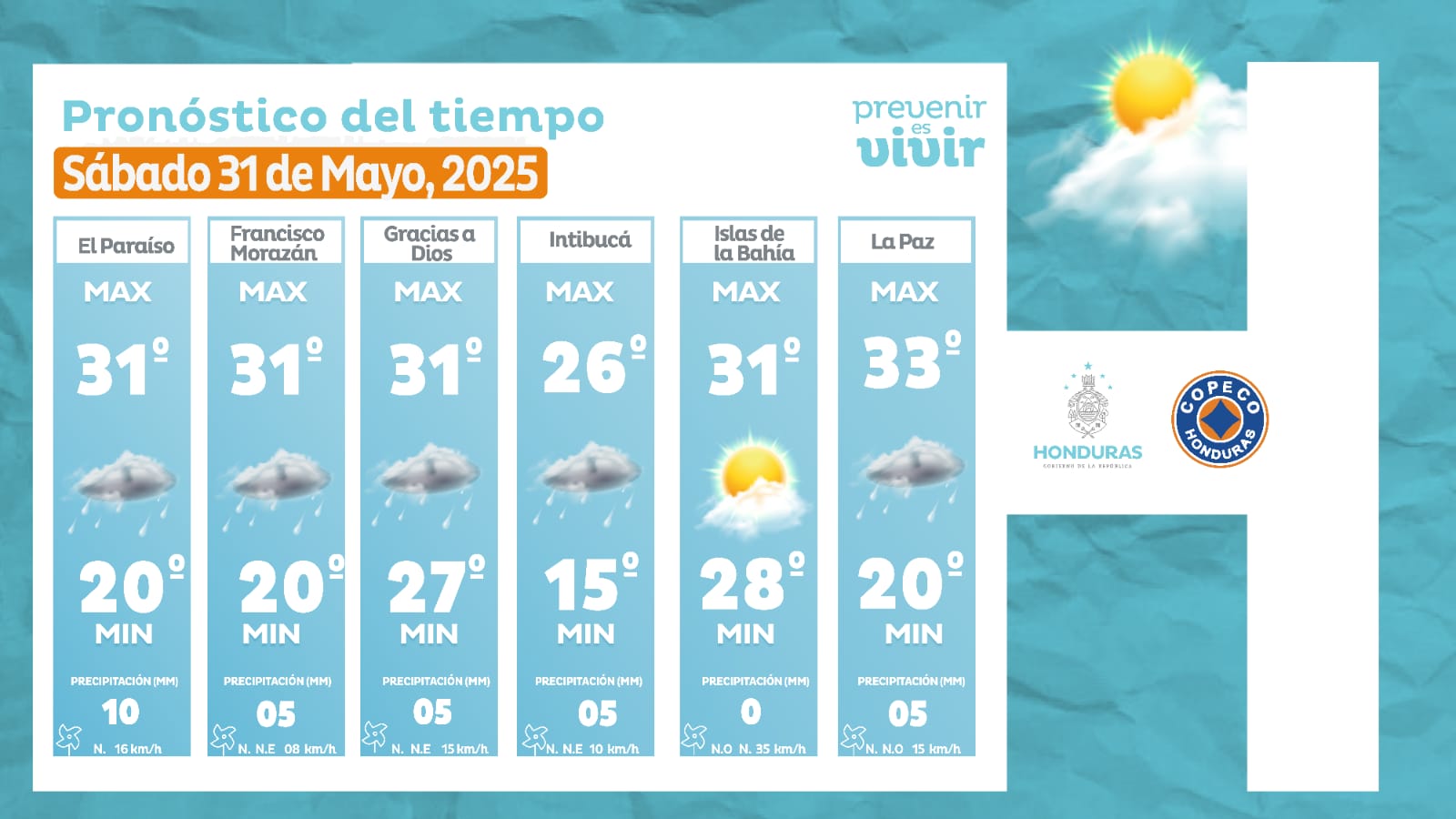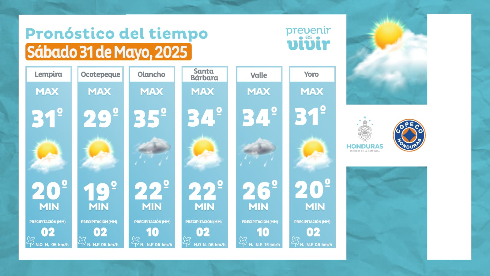 - Tegucigalpa: 31° como máximo, 20° como mínima (05 milímetros).