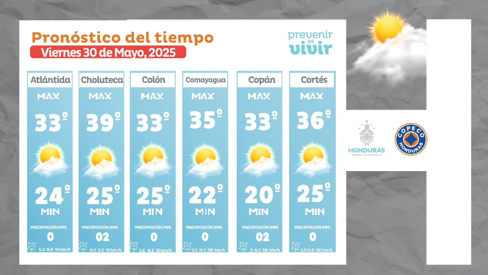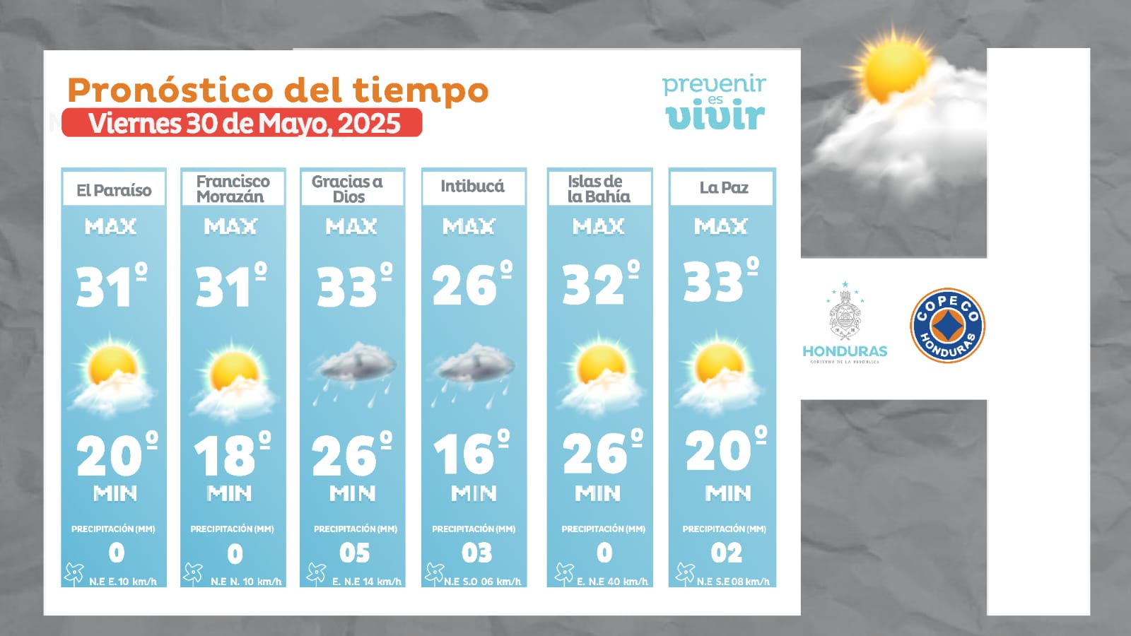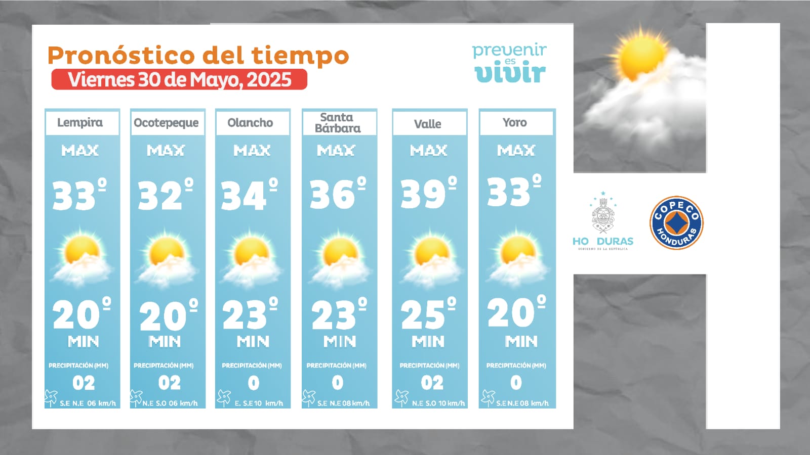 - Olancho: 34° como máxima, 23° como mínima (0 milímetros).
