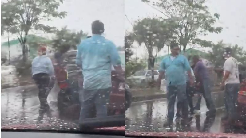 La escena fue captada en video por un testigo desde otro vehículo. En las imágenes, que ya circulan ampliamente en redes sociales, se observa cómo varios ciudadanos intentan separar a los agresores. Entre ellos, una mujer se interpone de forma decidida con la intención de calmar los ánimos y evitar que el conflicto escale.