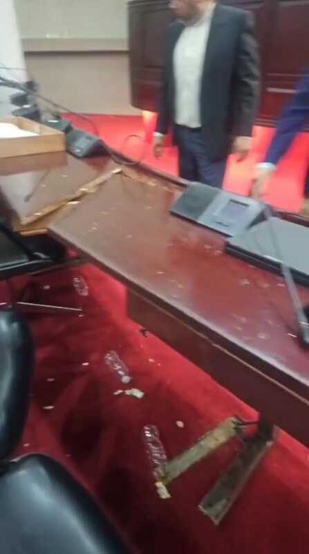 Durante la sesión del pasado martes, 8 de julio, se observaron empujones, se lanzaron agua y botes vacíos, lo que provocó daños en algunos curules y en el sistema de audio.