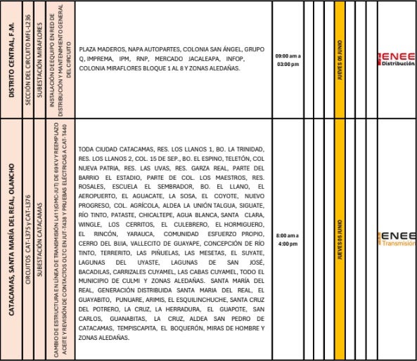Redacción. La Empresa Nacional de Energía Eléctrica (ENEE) informó a través de sus canales oficiales que este jueves 5 de junio se llevarán a cabo cortes programados en el suministro eléctrico en diferentes zonas del país.