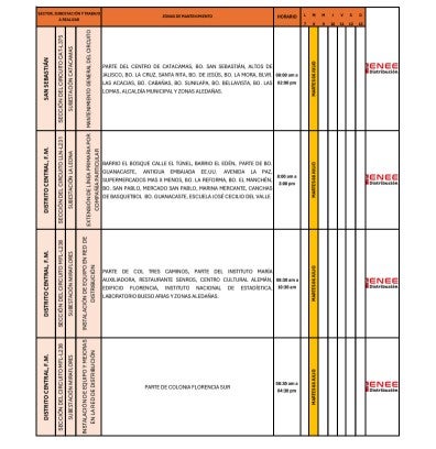 En varias zonas del Distrito Central no habrá electricidad desde las 8:00 a. m. hasta las 4:00 p. m. debido a trabajos de mantenimiento general, según las zonas establecidas.
