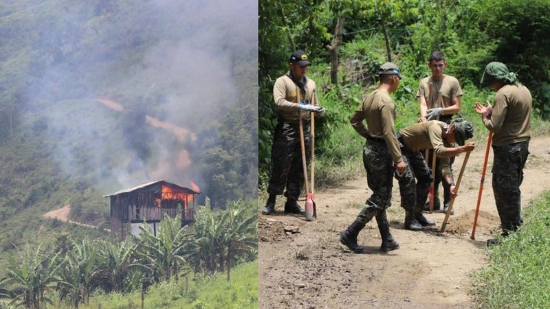 Ubicaron varias viviendas elaboradas de madera. Tras las debidas inspecciones del caso, las autoridades militares procedieron a quemarlas.