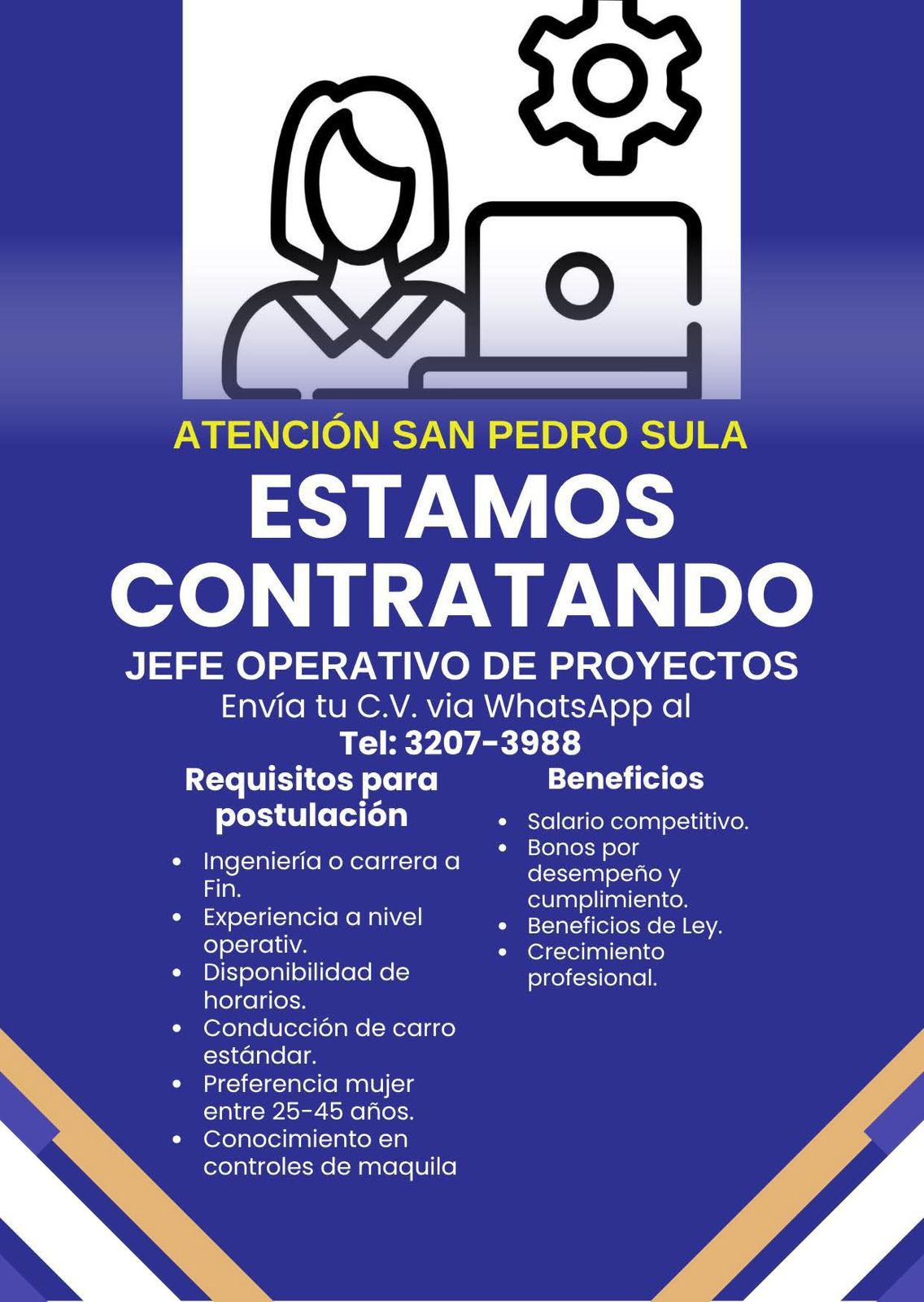 De su lado, la empresa Improin está interesada en contratar motorista, motorista de cabezal y encargado de bodega en San Pedro Sula, para más información llamar al 9795-9395.