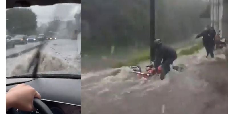 Moticiclista queda atrapado por la fuerte lluvia en las inmediaciones del Aeropuerto Toncontín en Tegucigalpa.