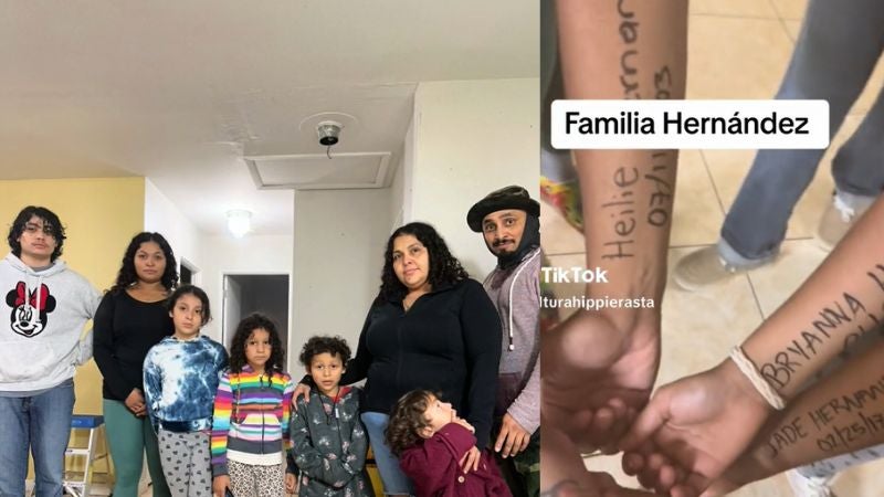 El compatriota conocido en TikTok como @culturahippierastra compartió la imágenes en esta popular red social. Su familia, compuesta por su esposa, cuatro niños, dos jóvenes y dos perros, ha seguido las recomendaciones de las autoridades locales de manera inusual: se han escrito sus nombres y fechas de nacimiento en sus brazos como una medida desesperada ante el riesgo de perder la vida.