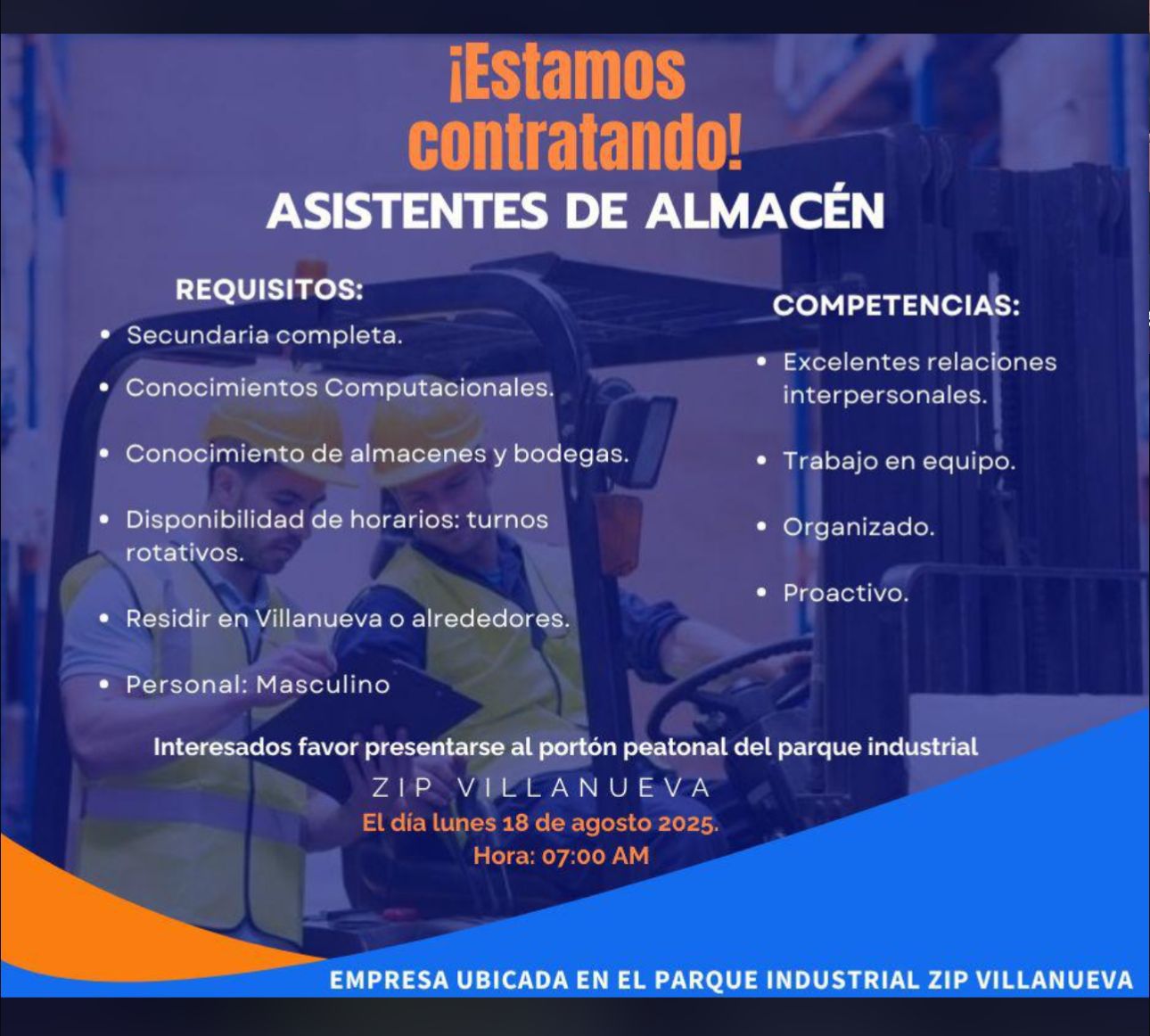 Mientras tanto, una maquila ubicada en el Parque Zip Buena Vista, en el municipio de Villanueva, busca personal que tenga experiencia en máquina plana, sorgete o cover.