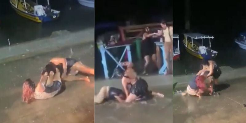 Redacción. Bajo la lluvia y presuntamente en estado de ebriedad, cuatro mujeres se fueron a los golpes en una zona transitada por miles de turistas tanto nacionales como extranjeros en Islas de la Bahía.