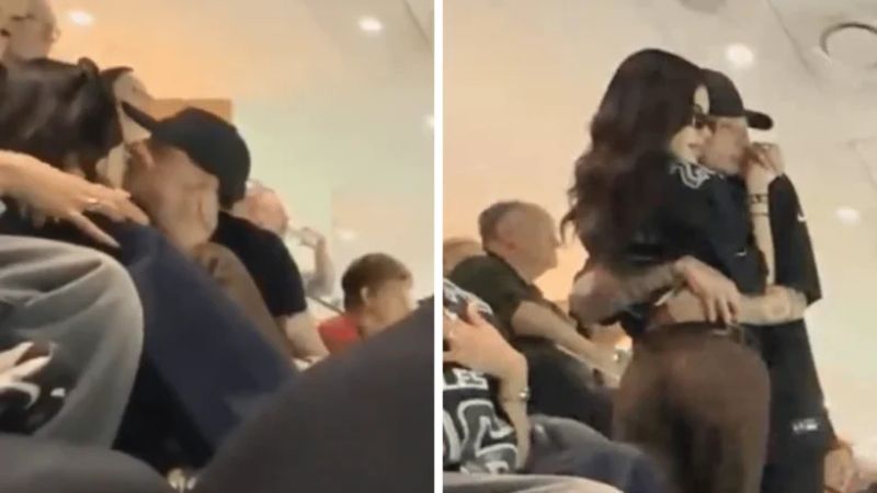 Finalmente, al retirarse de sus asientos asignados cuando acabó el partido, Kenia y Peso Pluma se retiraron abrazados. En otro videoclip se ve al intérprete de “Ella baila sola” rodear con sus brazos a Kenia Os mientras caminan juntos.