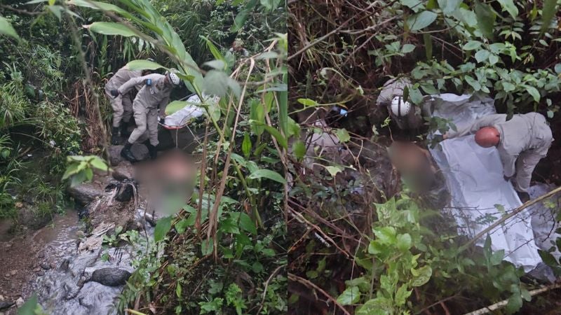Las imágenes compartidas por la unidad de bomberos mostraron a los uniformados cubriendo los cuerpos y utilizando camillas para sacar los cadáveres de la quebrada donde quedaron tras intentar huir durante el operativo.