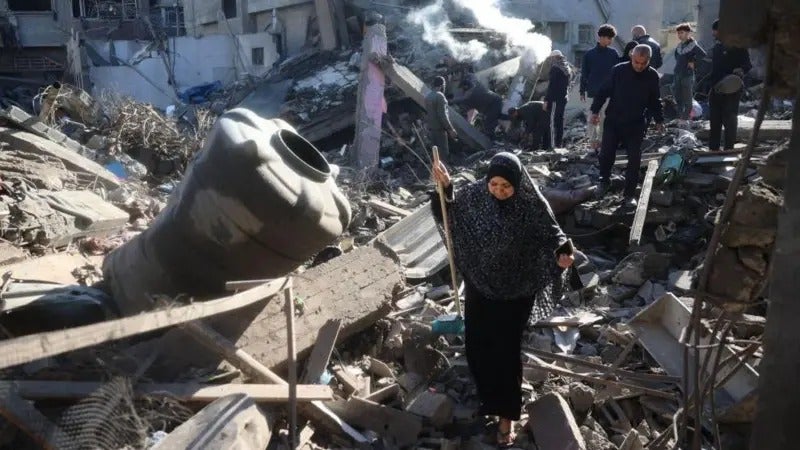 La Oficina de la ONU para la Coordinación de Asuntos Humanitarios estima que aproximadamente la mitad de las víctimas mortales son mujeres y niños. El continuo ataque de Israel contra Gaza se desencadenó por la mortífera masacre del 7 de octubre que militantes de Hamás perpetraron.