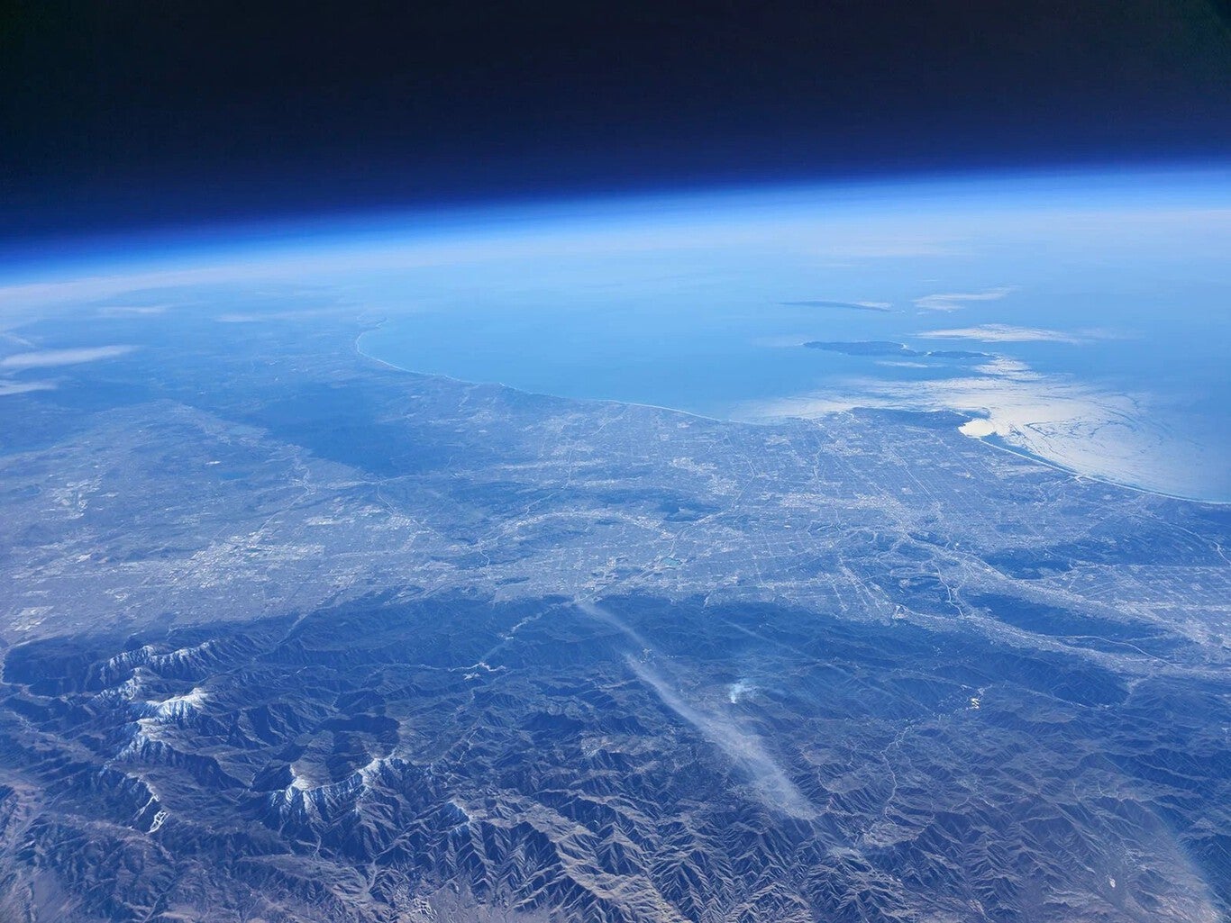 Los teléfonos se elevaron más de 36 kilómetros. A esa altitud, la atmósfera es más fina, las nubes quedan mucho más abajo y el cielo azul se ha convertido en un inmenso vacío negro.