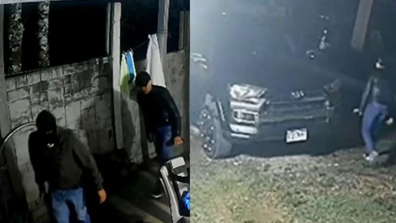 Tras asegurarse de no haber sido detectados por los ocupantes de la vivienda, se aproximan al vehículo estacionado, logran abrirlo y posteriormente lo encienden para abandonar el lugar a bordo del mismo.