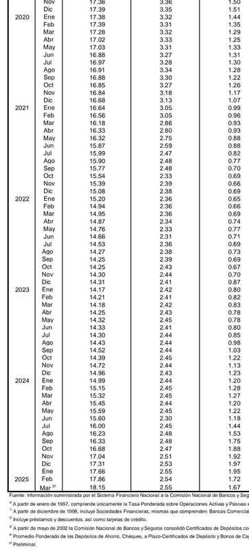 El cambio en la TPM provocó que el 2024 cerrara con una tasa de 17.31 %; solo en ese año incrementó un 2.32%. Y el último reporte señala que al cierre de marzo de este 2025 se posicionó en 18.15 %, una alza de 0.84 % en tres meses.
