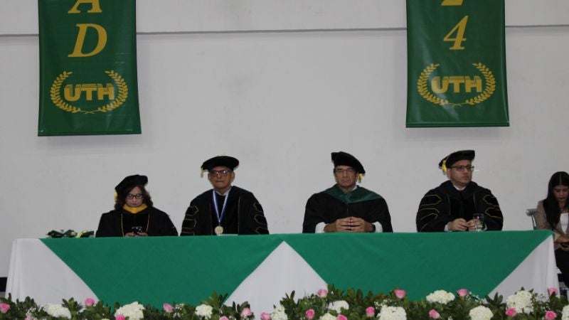 La ceremonia la encabezaron las autoridades de UTH, entre ellos la licenciada Marina Castellanos, directora académica de UTH en Tegucigalpa; el doctor Diego Chacón, vicerrector de Vinculación Nacional e Internacional; y el doctor Javier Mejía Barahona, máxima autoridad del centro de enseñanza.