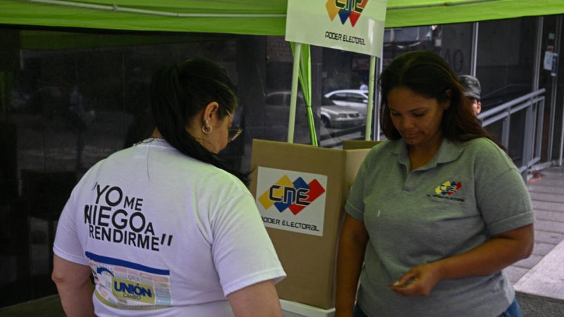 El proceso abrió a las 6H00 (10H00 GMT) y en la primera hora la mayoría de los centros de votación en el centro de Caracas estaban desiertos, apenas un puñado de electores en fila. La imagen dista de las concurridas presidenciales del 28 de julio pasado.